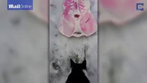 Cat loves sledding so much it pushes itself down the slope