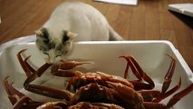 funny cats being scared - Cats intrigued by crabs