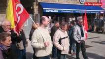 Parti à 11 h de la place de la Résistance, 70 personnes ont défilé dans les rues de Châteaulin. C'est un peu moins que les autres années où l'on comptait, bon an mal an, une grosse centaine de marcheurs. La prise de parole a porté sur les attentats, les réfugiés, la loi Travail, la diminution du pouvoirs d'achats, la précarité, le chômage ou encore la "casse" des services publics. Avant que le cortège ne s'ébranle, la CGT, organisatrice du défilé, a rendu hommage à l'un des leurs : Alain Le Berre, secrétaire général des postiers du sud-Finistère, brutalement décédé le 7 janvier dernier. Les images de Loïc L'Haridon.