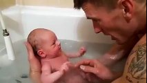 New born baby taking bath with his Father