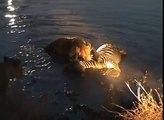 Lion vs Zebra - Death Struggle as the Lioness drowns the Zebra