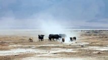 Lions vs. Buffalo at the Ngorongoro Crater