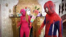 Pink Spidergirl vs Cinderella - Spiderman & Frozen Elsa, Joker, Maleficent, Minions & Giant Candy