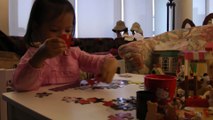 Girl is humming while playing her Peppa Pig puzzle. (f124)