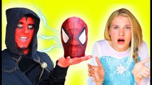 Is Frozen Elsa Dead- Evil DEVIL Kiss of Death- w- Spiderman Joker Toy! Superhero fun IRL