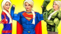 Frozen Elsa in Cinderella Dress KISSES Joker Vs Spiderman, Superman & Wonder Woman