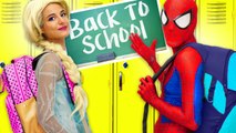 Frozen Elsa & Spiderman GO TO SCHOOL! w- Bad teacher Maleficent, Superman & Wonder Woman