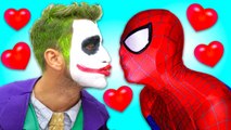 Is Spiderman Kissing Joker Girl- w- Frozen Elsa, Blue Spiderman Real Bad Joker in Real Life