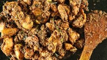 In a pan heat oil, add garlic paste and once the raw smell of the garlic goes away add some pepper and chicken.