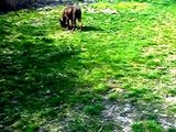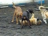 Playful dog fights, Doberman against the Alaskan Malamute and the Bordeaux Great Dane. A lot of positive in this video.