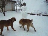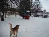 Dog shows protection qualities, beautiful snow-white winter, big snowman and big dogs
