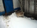 The first snow of Cameroonian goats mini goats in winter, African goats at home