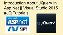 In this video we have learn about jquery and how to create jquery popup in asp.net vs 2015 its very easy way to learn and its also helpful for new learner student visual studio asp.net.