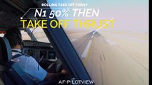 Take-off aircraft Airbus A340-300 Cockpit View