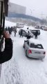 Les voitures sur la neige à Madrid n'ont pas de pneus neige