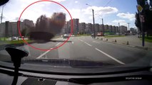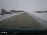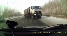 Des voitures évitent un camion (Russie)