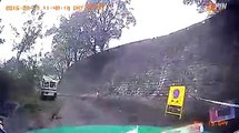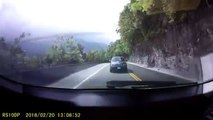 Un rocher s'écroule juste devant sa voiture