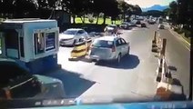 Un piéton traverse en courant à un péage et provoque un accrochage