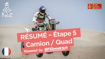 Camion : TON VAN GENUGTEN / BERNARD DER KINDEREN / PETER WILLEMSEN (PETRONAS TEAM DE ROOY IVECO) a remporté l’étape Córdoba / Córdoba devant MARTIN MACIK / FRANTISEK TOMASEK / MICHAL MRKVA (BIG SHOCK RACING) et DMITRY SOTNIKOV / RUSLAN AKHMADEEV / ILNUR MUSTAFIN (KAMAZ - MASTER ). EDUARD NIKOLAEV / EVGENY YAKOVLEV / VLADIMIR RYBAKOV (KAMAZ - MASTER ) est leader au classement général devant SIARHEI VIAZOVICH / PAVEL HARANIN / ANDREI ZHYHULIN (MAZ-SPORTAUTO) et AIRAT MARDEEV / AYDAR BELYAEV / DMITRIY SVISTUNOV (KAMAZ - MASTER )