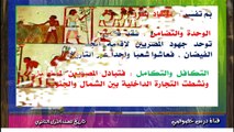 الحلقة الرابعة : تتناول الحلقة الحياة الإقتصادية والدينية فى مصر القديمة ، وهى الزراعة والصناعة والتجارة ، والتعرف على الزراعة وأنواع المحاصيل ( الحبوب ، الخضروات ، الفواكه ) ومواسمها والأدوات المستخدمة بها ، ومواسمها ( الفيضان ، البذر ، الحصاد ) والتعرف على إدارات شئون الزراعة ( إدارة مسح الأرض ، إدارة الري ، الإدارة المحلية للأقاليم ، إدارة الزراعة ) وملكية الأرض فى ذلك الوقت ، والتعرف على أهم الصناعات ( الأخشاب ، الغزل والنسيج ، الجلود ، الزجاج ، البردي ) والتعرف على الحياة الصناعية ( حالة الصانع المصري ، تنوع الصناعات ) وكذلك أهم الصناعات والنشاط التجاي وقتها ( رحلات الملكة حتشبسوت ) والتعرف على أنواع الصيد ( الصيد الرياضي ، الصيد المعيشي ) ، حيوانات الحقل واستخداماتها ، والتعرف على أنواع المراكب المستخدمة داخليا وخارجيا ، وكذلك التعرف على الآلهة فى مصر القديمة وفلسفة البعث والخلود ، والثواب والعقاب ، والتعرف على شخصية الملك اخناتون بجانبيها السلبي والإيجابي ، درس شيق وممتع مع الأستاذ فتحي راشد معلم مادة التاريخ بوزارة التربية والتعليم .