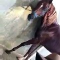من شده الحر لجئت هذه الناقه الي البحر