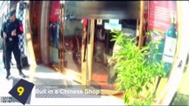 Chinese pedestrian narrowly avoids being hit by truck smashing into shop