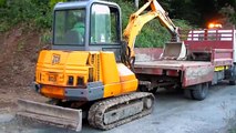 Mini Excavator climbing onto Truck Without Ramps...!!!