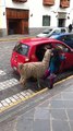 Un lama prend un taxi