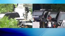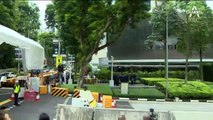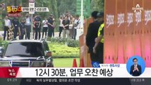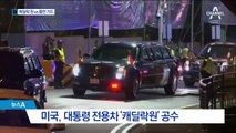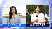 지금 일부 기자들이 들어가서 촬영기자들이 회담장 앞에서 준비를 하고 있고요. 지금 화면 왼쪽의 움직임이 주목되는데요. 지금 이 시각 현재 카펠라 호텔의 모습인가요? 검은 차량이 진입하고 있는 모습 보이고 있습니다.