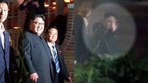 원래는 김정은 위원장이 타고 있는 차량으로 알려지고 있는데. 밑에 자막 좀, 가려진 부분이 있어서 부탁 좀 드리겠습니다. 맞습니다. 지금 김정은 위원장이 카펠라 호텔 회담장에 먼저 도착을 하는 것 같습니다. 김영철 부위원장이 먼저 도착해서 맞이하고 있고요. 문이 열리고요.