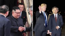 인민복 차림으로 나타났고 트럼프 대통령은 통상 외교무대에서 착용하는 그런 차림을 나타날 것으로 예상됩니다마는 한 가지 주목할 부분이 있다면 넥타이 색깔을 어느 컬러로 착용했을지 이런 부분도 지켜볼 만합니다.