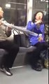Metro'da bir bayana nasıl yer vermezsin diye erkekle kavga eden Koreli kadın