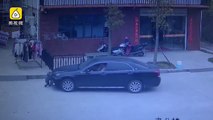 Sokakta oynayan 2 yaşındaki Çinli çocuk az kalsın araba altında kalıyordu