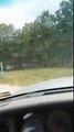 Un 4x4 croit qu'il peut passer une inondation sur une route