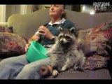 實拍:小浣熊沙發閒坐偷吃主人爆米花
