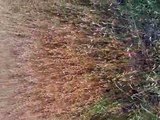 Sprocker Spaniel springing in oat field