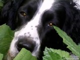 Sprocker spaniel eating blackberries