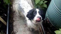 Sprocker spaniel eating more blackberries from the BlackBerry bush