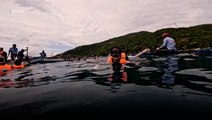 Giant Whale Shark Sneaks Up on a Snorkeler Posing For Pictures