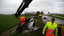 Omdat het volgens de agenten ter plaatse een duidelijk verhaal was voor wat betreft de oorzaak was een verder onderzoek door de verkeersongevallendienst niet nodig. Bergingsbedrijf Wolves takelde de twee totaal vernielde voertuigen af waarna de weg weer snel kon worden vrijgegeven.