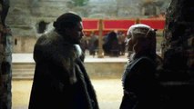 Dans ce premier extrait de 1m30, on voit 3 membres de la famille Stark (Jon, Arya, Sansa) réunis dans la crypte familiale de Winterfell. On voit ensuite une mystérieuse menace arrivée dans la crypte sous forme de fumée, les 3 frères et soeurs sortent alors leur épée, prêts à combattre.