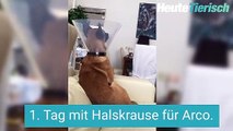 Schmollender Hund zeigt, was er von Halskrause hält