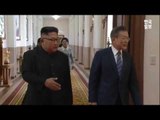 숙소인 백화원 영빈관에 도착한 이후에도 문 대통령은 별도 오찬과 휴식으로 보낸 4시간을 제외한 대부분의 시간을 김 위원장과 동행했다. 두 정상은 오후 3시30분 경부터 노동당 본부청사에서 2시간 동안 회담한 뒤, 평양대극장에서 함께 삼지연관현악단의 공연을 관람했다. 목란관에서 이어진 공식 만찬자리는 2시간을 훌쩍 넘겨 밤까지 계속됐다.