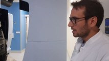 Igor Bessières, physicien médical, présente la salle du pupitre de l'IRM MRIdian Linac