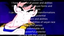 saiyan subliminal meditation I added supernatural condtion affirmations by sublimnal junkie among my own affirmations. saiyan dna zenkai boost powerful base form peak condition super condition supernatural condition absolute condition supernatural regeneration ki control cosmic energy projectiles cosmic energy cosmic being time control reiki healing from distance and close teleportation flight weather control Atmokinesis speak all languages omnilingualism technology manipulation Cyberkinesis weapons deactivation from any distance disarmament of enemies with mind telepathy telekinesis energy force fields for protection oneself and others manifestation healthy mind healed from any disabilities healed from any disorders healed from any mental disorders omnipotence master of all power and abilities form all saiyan transformations have all powers and abilities have all powers and abilities of saiyan race good person undominable will protector one with the universe one with our creator i have all saiyan power and abilities confidence supernatural beauty and charisma supernatural luck wisdom intelligent food manifestation I wish to see the highest possible outcome successful afluent business genius durable body athletic martial arts mastery everything is easy for me i am a force of good