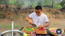 【Shyo video】小伙河邊煮牛雜火鍋,新鮮牛肚直接撕著吃,這樣的生活真爽
