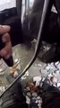 Estación de Sants en Barcelona La separata grita "no nos peguéis", pero la única que "se pega" es ella pero como una lapa al policía.