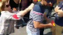 Un cobarde separatista agrede a una chica en Barcelona por llevar la bandera española