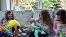 Sophia, Isabella e Alice Mostrando os Brinquedos do Bebê