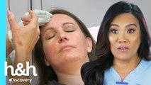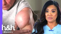 Stacey tem um lipoma no braço há 16 anos. Ela tenta disfarçar a protuberância com as roupas e espera receber um tratamento definitivo da doutora Sandra Lee.